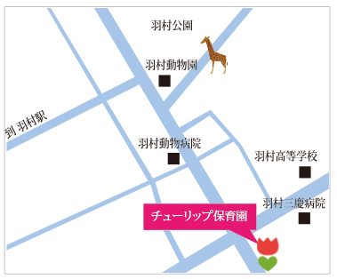 アクセスマップ 羽村駅より車で5分 【アクセスマップ】 〒205-0022 東京都羽村市双葉町1-1-22 TEL 042-554-0102 平日 7:00~20:00 まで ■羽村駅より車で5分 ■羽村駅より羽村街道を直進。羽村動物公園東交差点を右折 早期教育と幼児教育の違いは? Copyright © チューリップ保育園